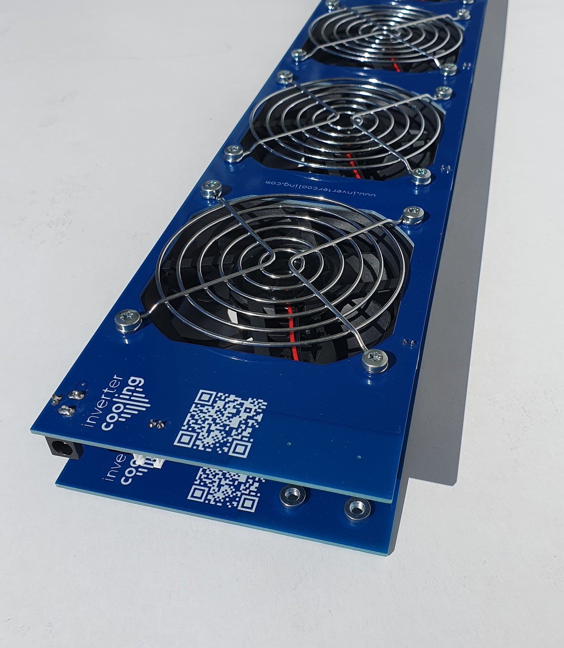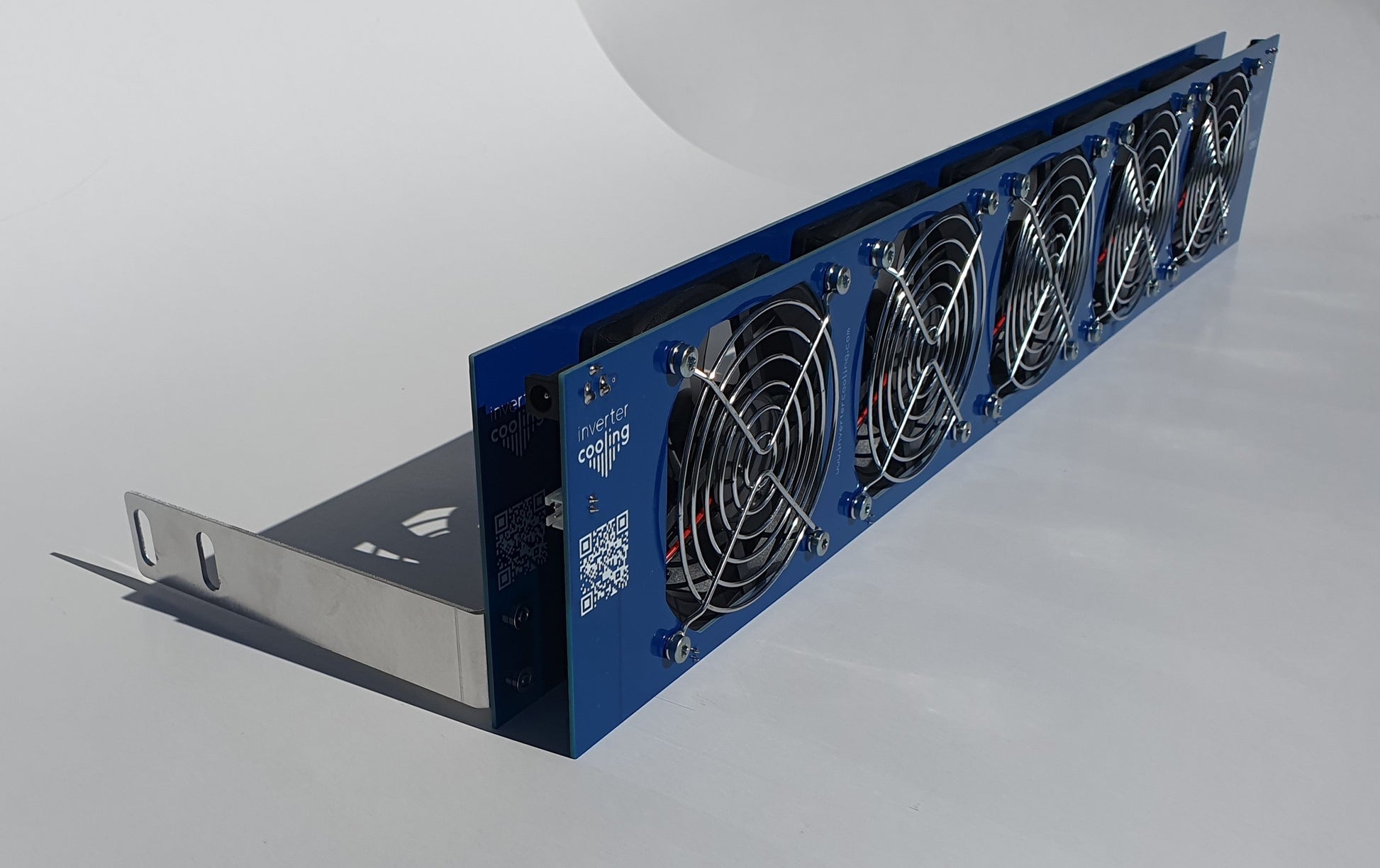Temperaturgesteuerte Lüftereinheit (Nachrüstsatz) für passiv gekühlte Wechselrichter* montiert über dem rückseitigen Kühlkörper – in verschiedenen Grössen erhältlich.