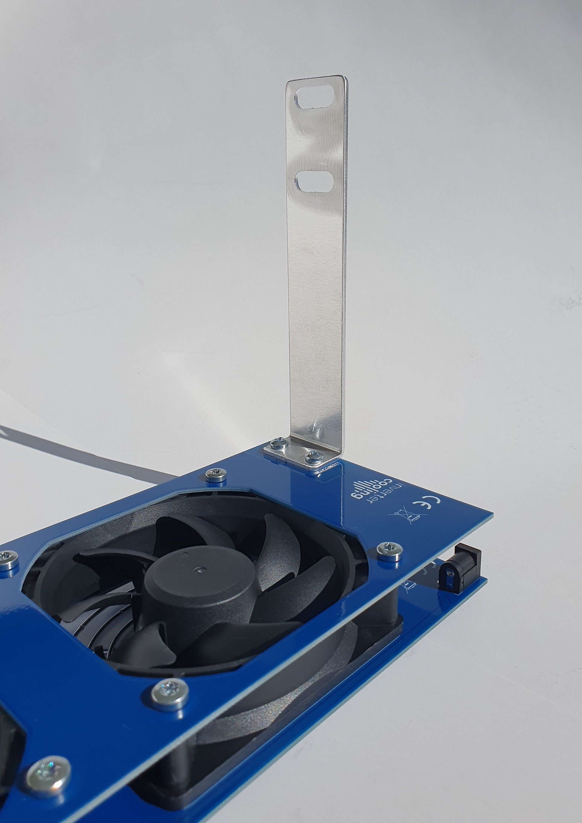 Die Speisung der Lüfter erfolgt durch ein 12V Steckernetzteil (MTBF 100.000 Stunden) mittels einer DC-Kabelbuchse links-und/oder rechtsseitig. Die Kabellänge des Steckernetzteils beträgt ca. 1,5 Meter.