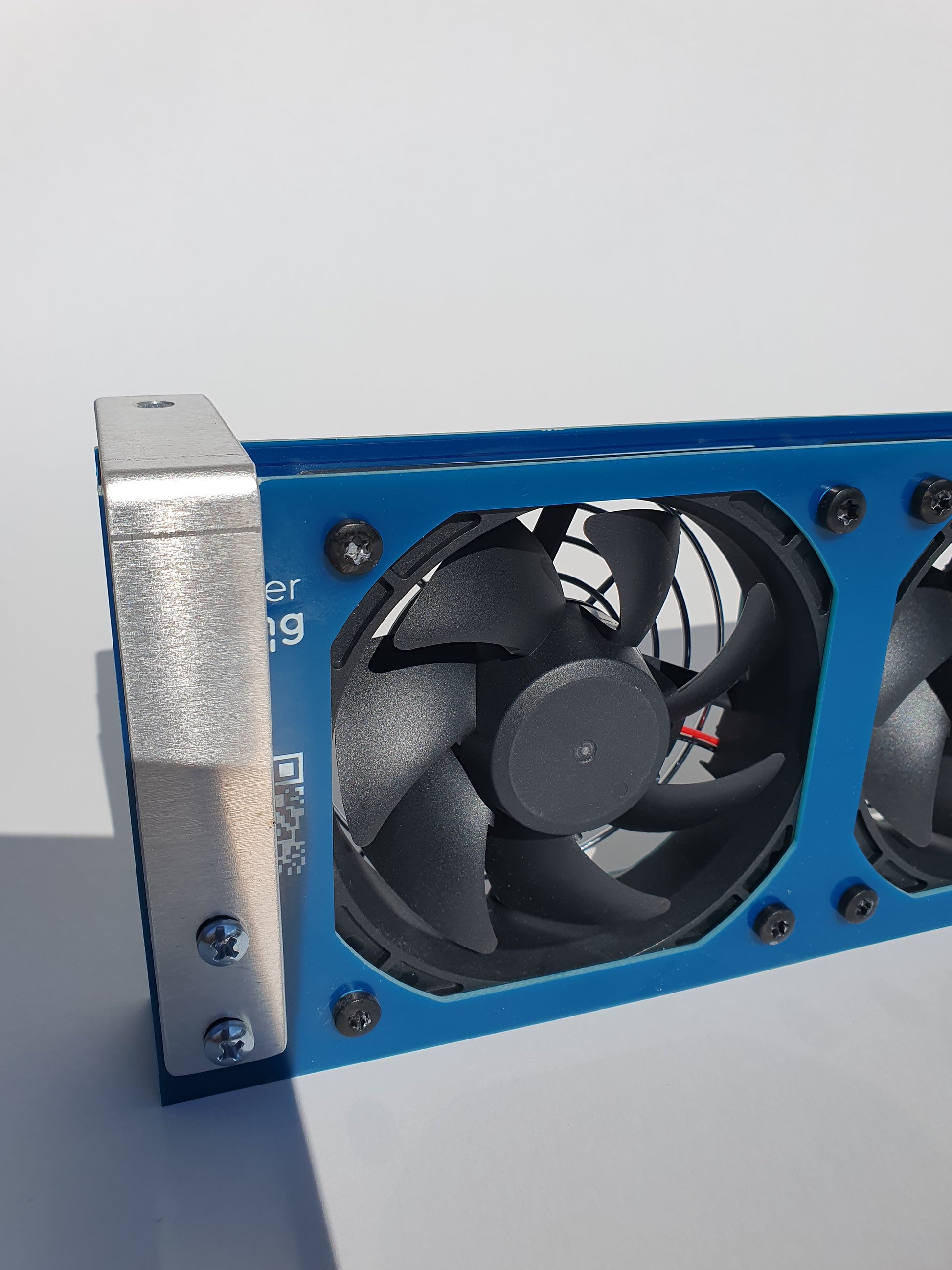 2-fach kugelgelagerte Lüfter (3-6 Stück Lebensdauer 50.000 Stunden), montiert auf 2 Leiterplatten (stabiles FR4 Material - bestehend aus Epoxidharz und Glasfasergewebe) mit Schutzabdeckung oben mit verchromten Lüftergittern.